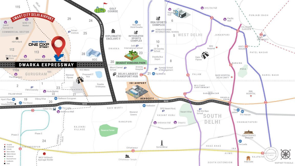 Smart World One DXP is strategically located in Sector 113, Gurgaon, right on Dwarka Expressway. This prime location ensures seamless connectivity and easy access to Delhi, making smart world one dxp sector 113 Gurgaon a highly desirable residential address.